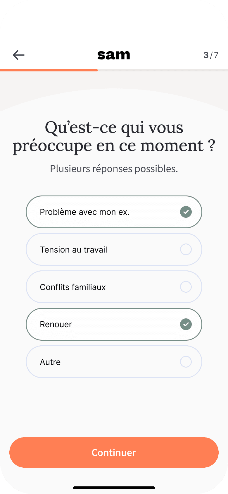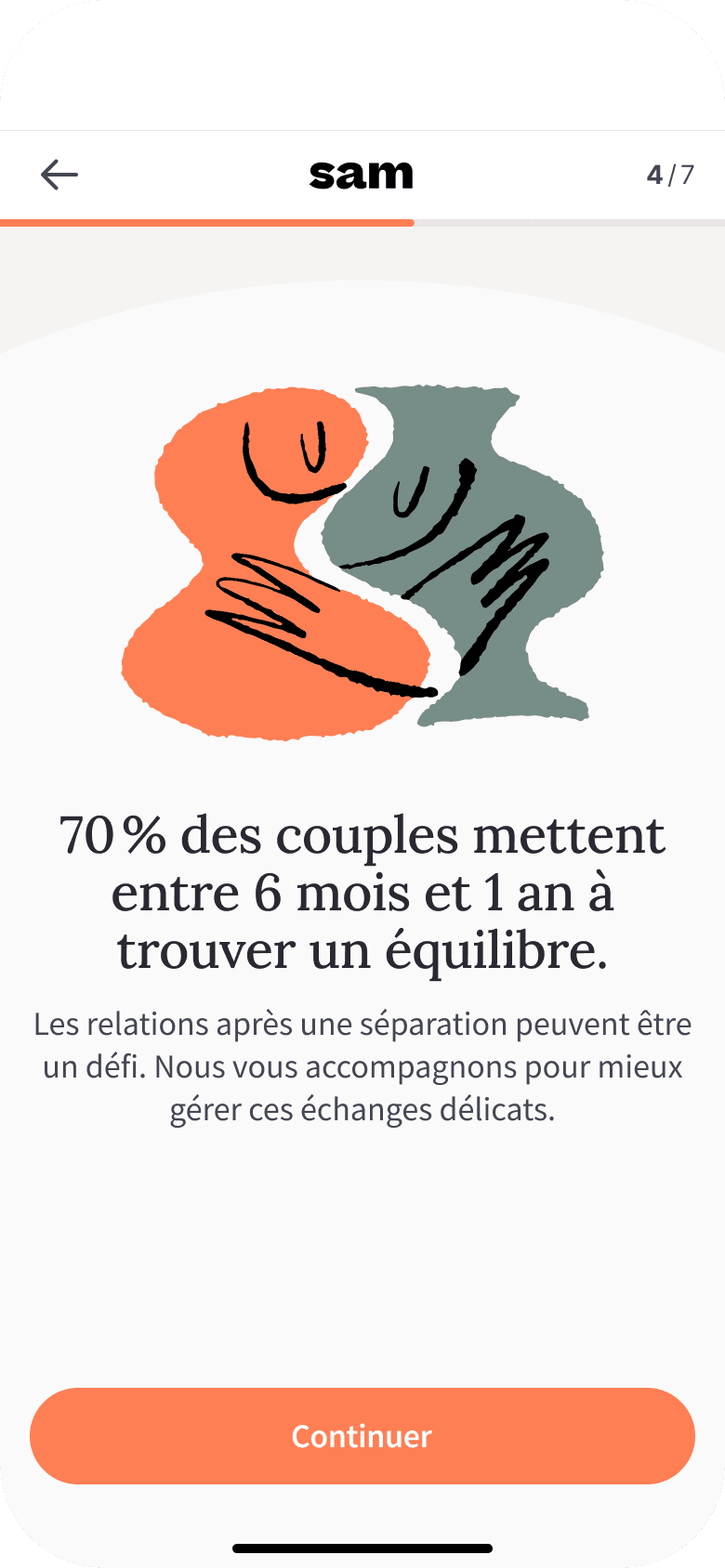 "Suite à ma rupture, les discussions houleuses avec mon ancien partenaire, en particulier au sujet des enfants, rendaient toute conversation épineuse. Grâce à Sam, j'ai su faire de ces instants des échanges paisibles et productifs. Désormais, la communication est plus aisée, et notre relation est harmonieuse."