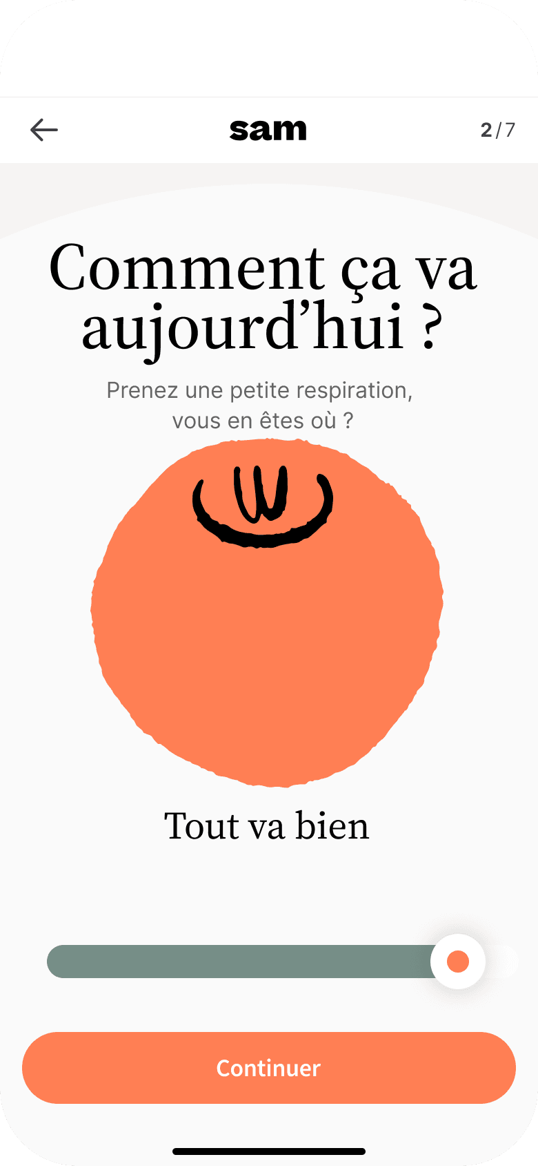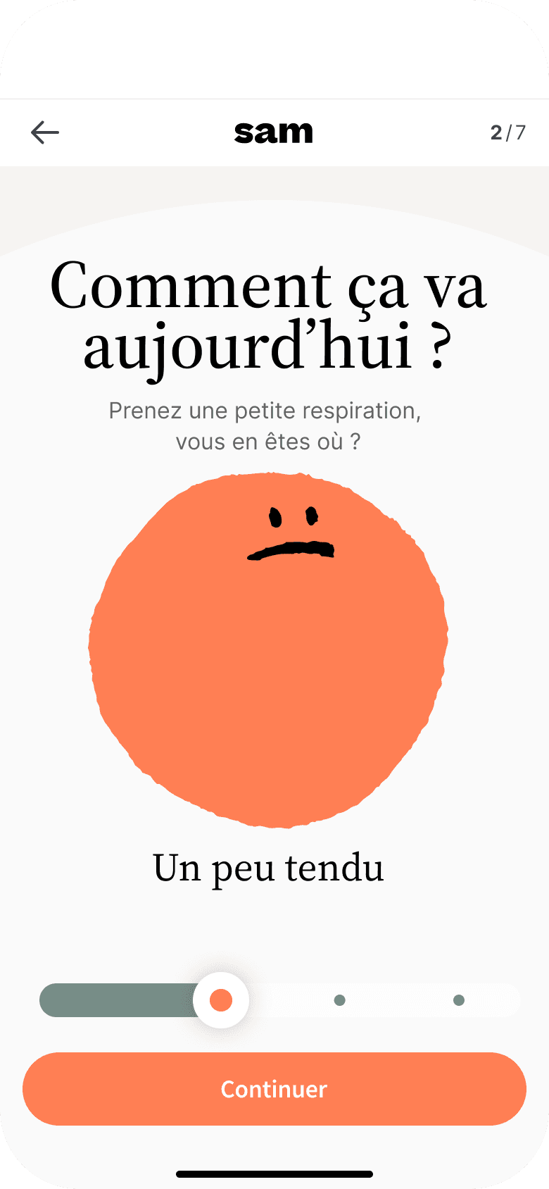 Absolument. Sam est à vos côtés 24h/24 et 7j/7 pour vous aider à apaiser vos tensions dès qu’elles apparaissent, que ce soit tôt le matin, en pleine journée ou tard le soir.
